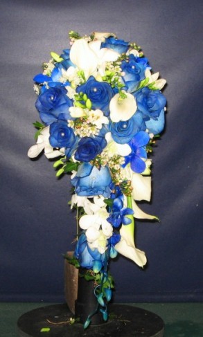 9+ Blue Cascading Wedding Bouquets Pics. A cascading bouquet is an arrangement of flowers that literally cascades from the bride's hands, creating a natural, trailing effect. Find blue wedding flowers in season at the florist, or use a diy flower kit.
